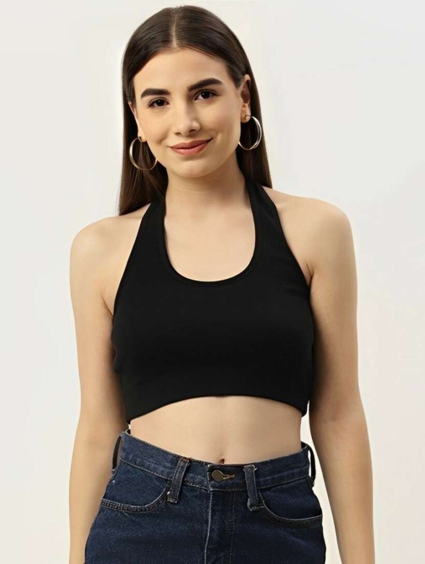 - » women black polyester crop top