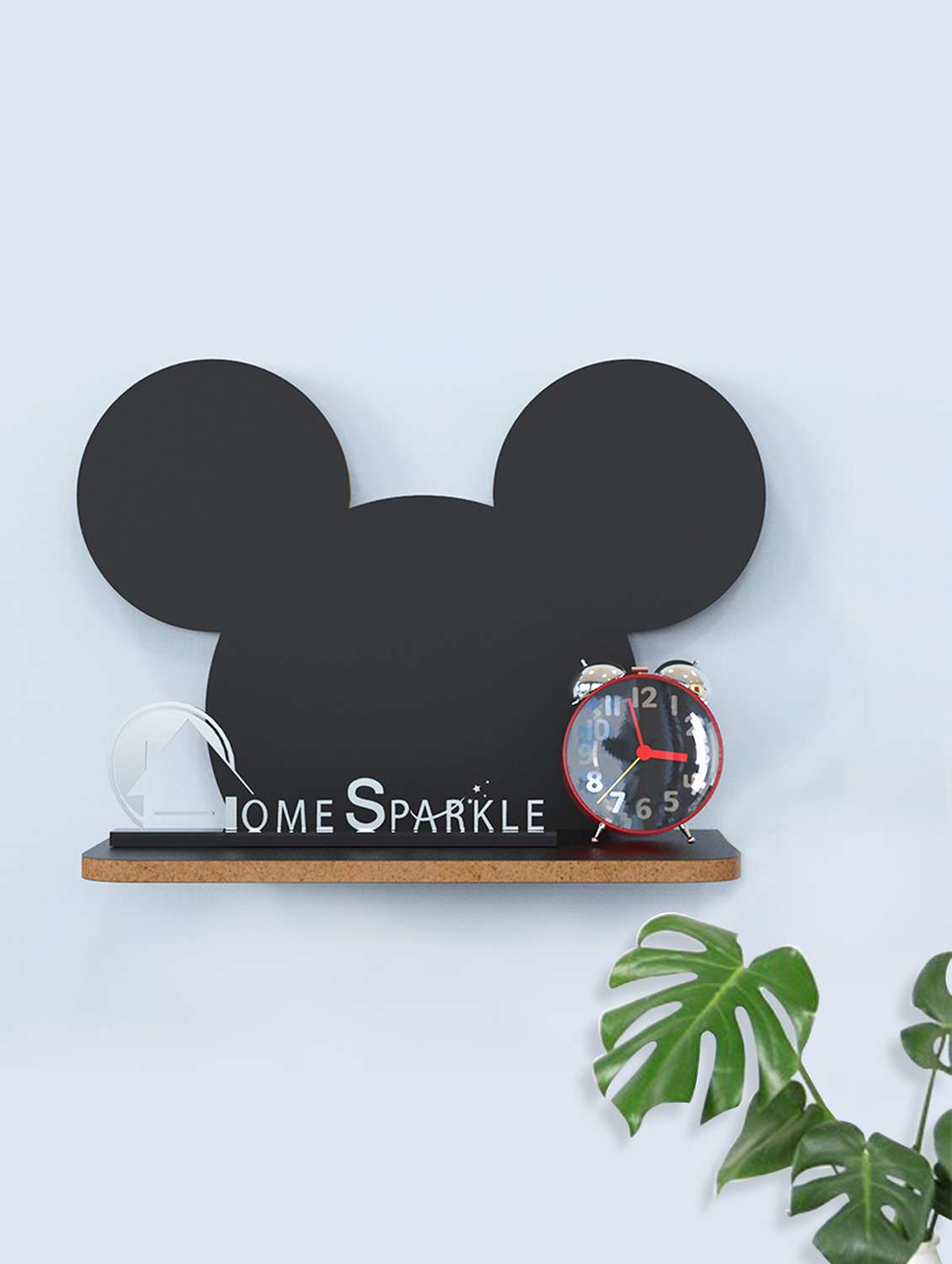 Home Sparkle Mickey Mouse Shaped Wall Shelf MDF Wall Shelf Rack Wall Mounted Floating Shelves (Black)
