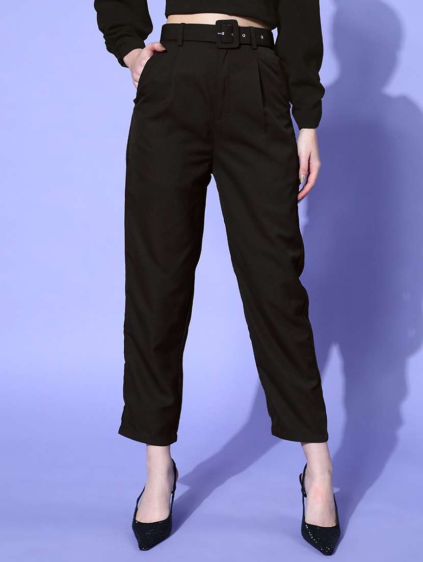 - » women high rise solid pleated trouser
