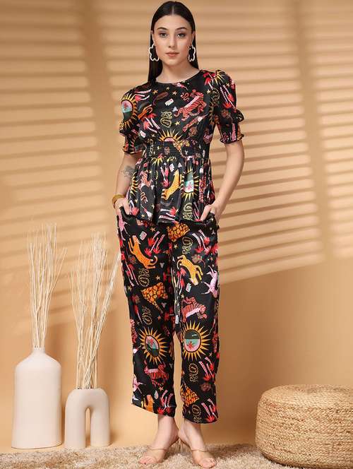 - » women black printed top and trouser co-ord set