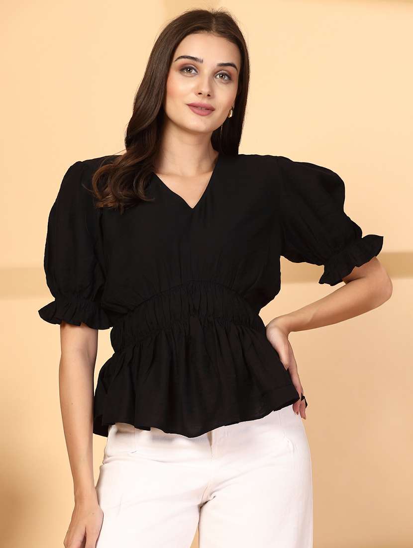 women solid puff sleeve peplum top - 21628383 - Very Small Image - 1