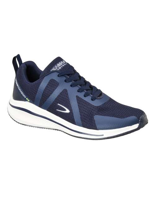 This pair of sports shoes with lace-ups styling, textured mesh panels and patterned rubber outsole promise ease of movement and outstanding durability.