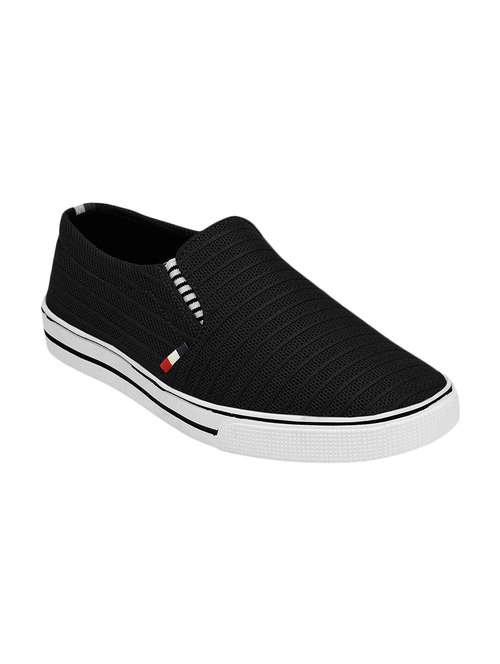 - Explore the epitome of comfy black slip ons with round shapes to provide you an elated experience every time you put them on.