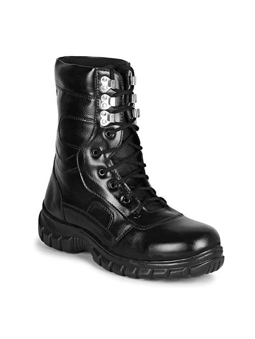 black mesh & synthetic lace up boots