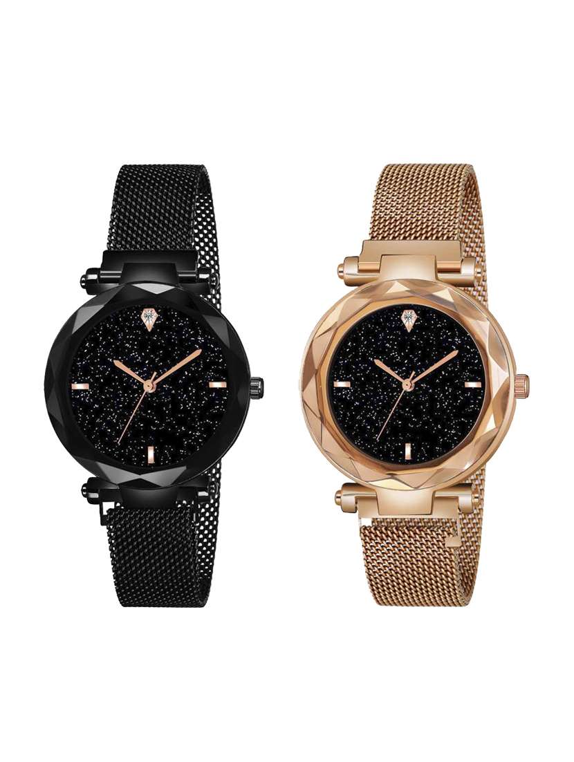 - » lorenz 2 sparkling diamond cut dial magnetic strap analog watches combo for women & girls- as-7576a