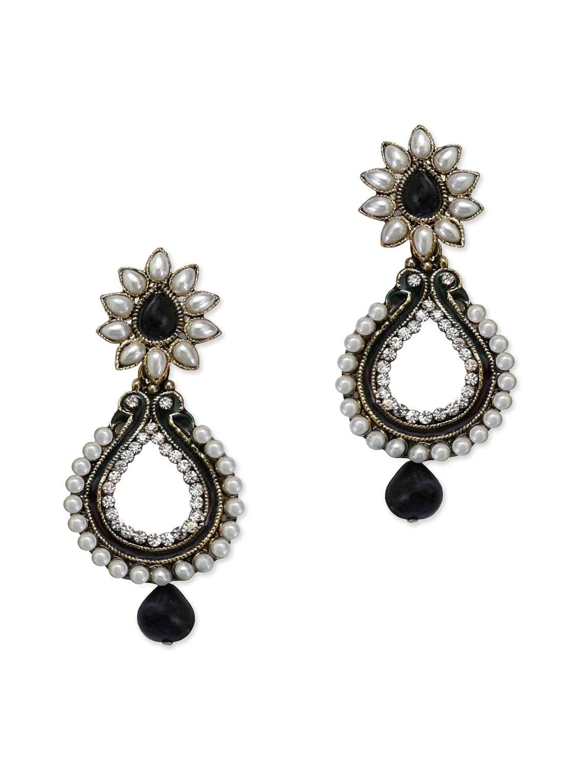 Bollywood Designer Black & White Jhumki Earrings - 10027.3