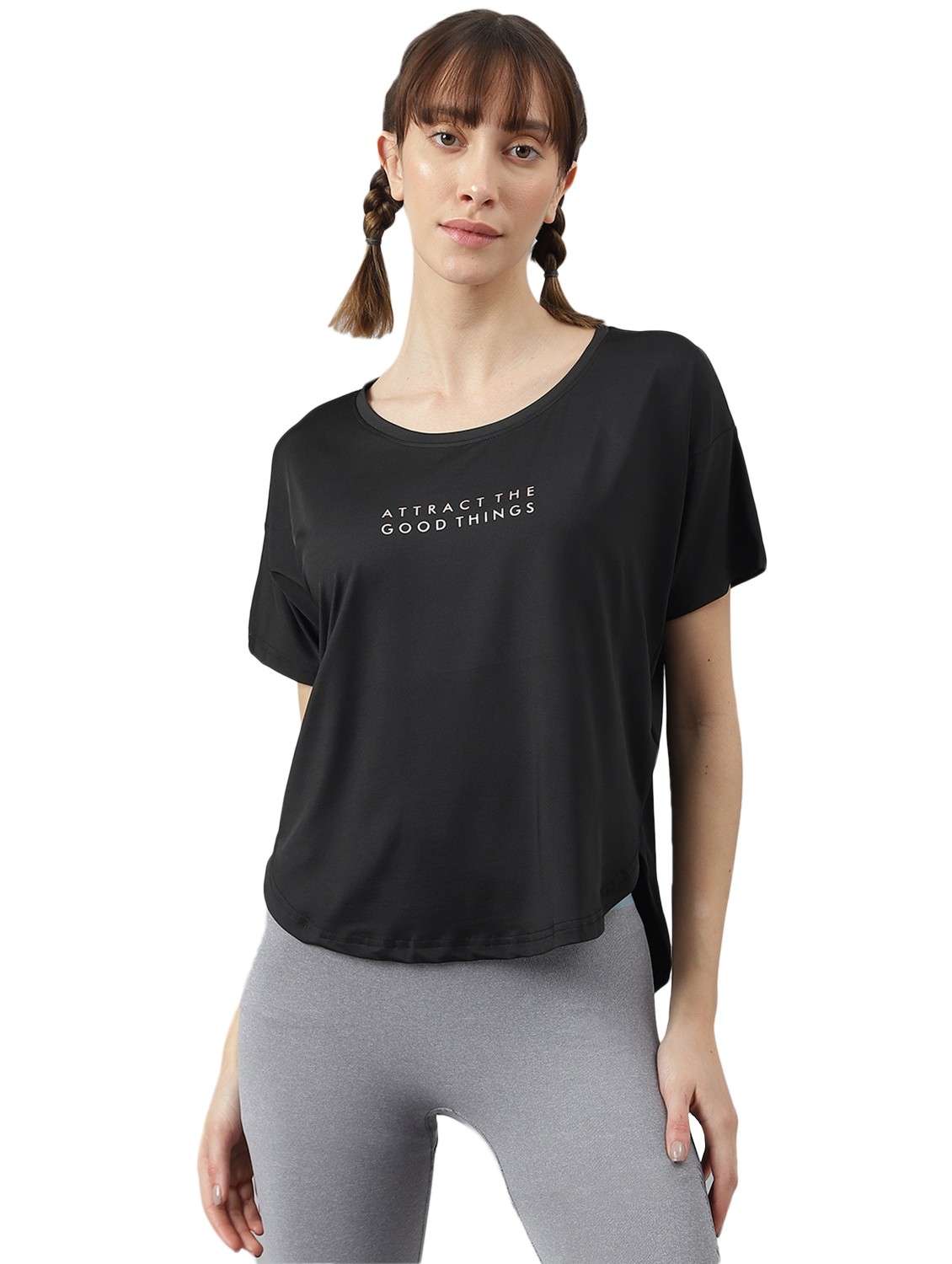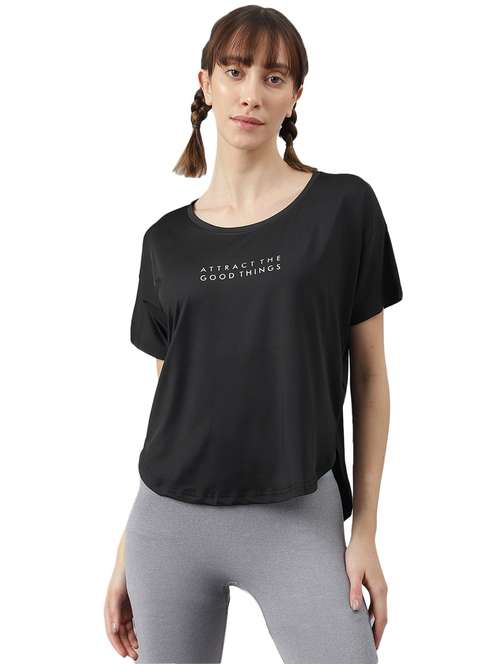 - » women printed dri-fit high low sports t-shirt