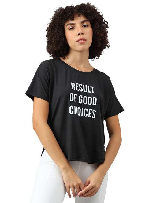 - It’s definitely not okay to be boring! So, are you ready to take things a tad bit unconventionally? Wear your tees in front print types for (active wear occasions and that too in polyester material.