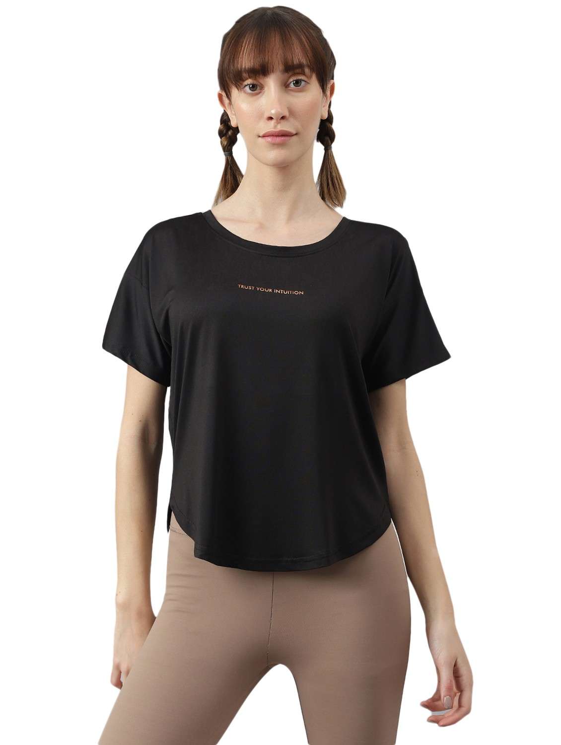 - » women printed dri-fit high low sports t-shirt