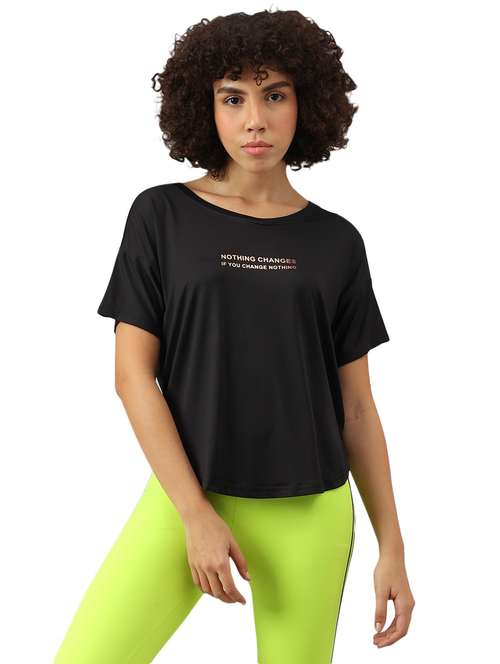 • It’s definitely not okay to be boring! So, are you ready to take things a tad bit unconventionally? Wear your tees in chest print types for (active wear occasions and that too in polyester material.