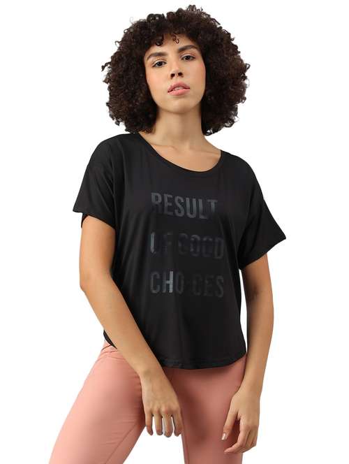 - It’s definitely not okay to be boring! So, are you ready to take things a tad bit unconventionally? Wear your tees in front print types for (active wear occasions and that too in polyester material.