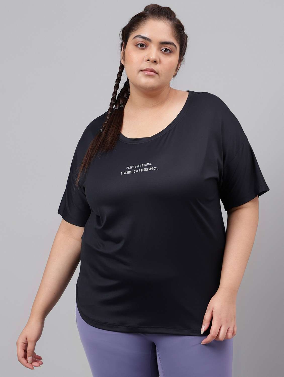 - It’s definitely not okay to be boring! So, are you ready to take things a tad bit unconventionally? Wear your tees in plus types for (active wear occasions and that too in polyester material.