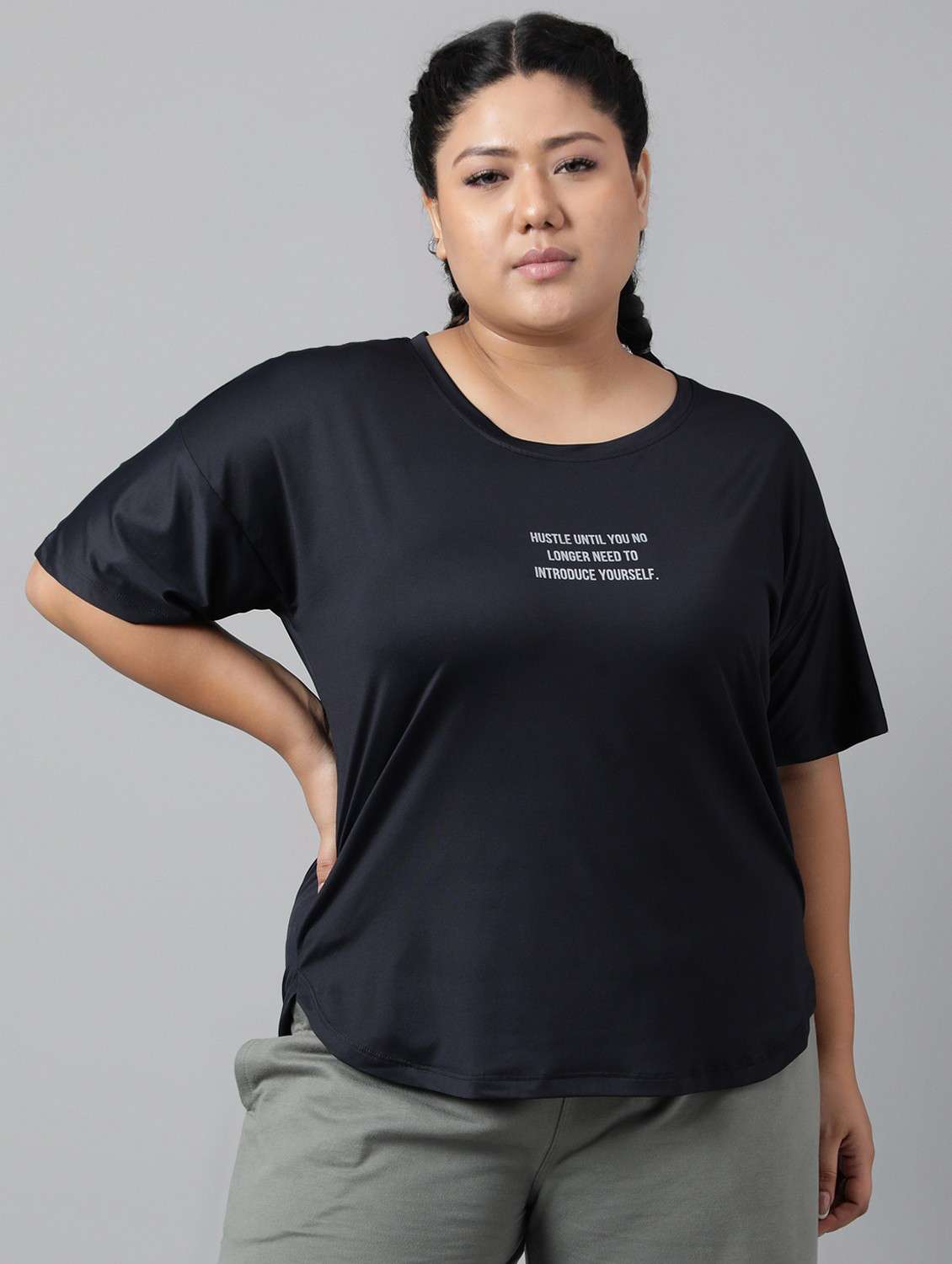 - It’s definitely not okay to be boring! So, are you ready to take things a tad bit unconventionally? Wear your tees in plus types for (active wear occasions and that too in polyester material.