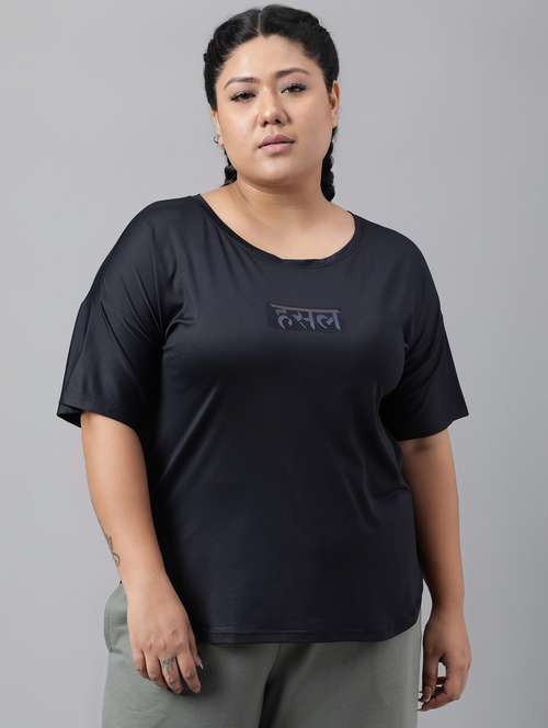 - » women black typographic round neck t-shirt