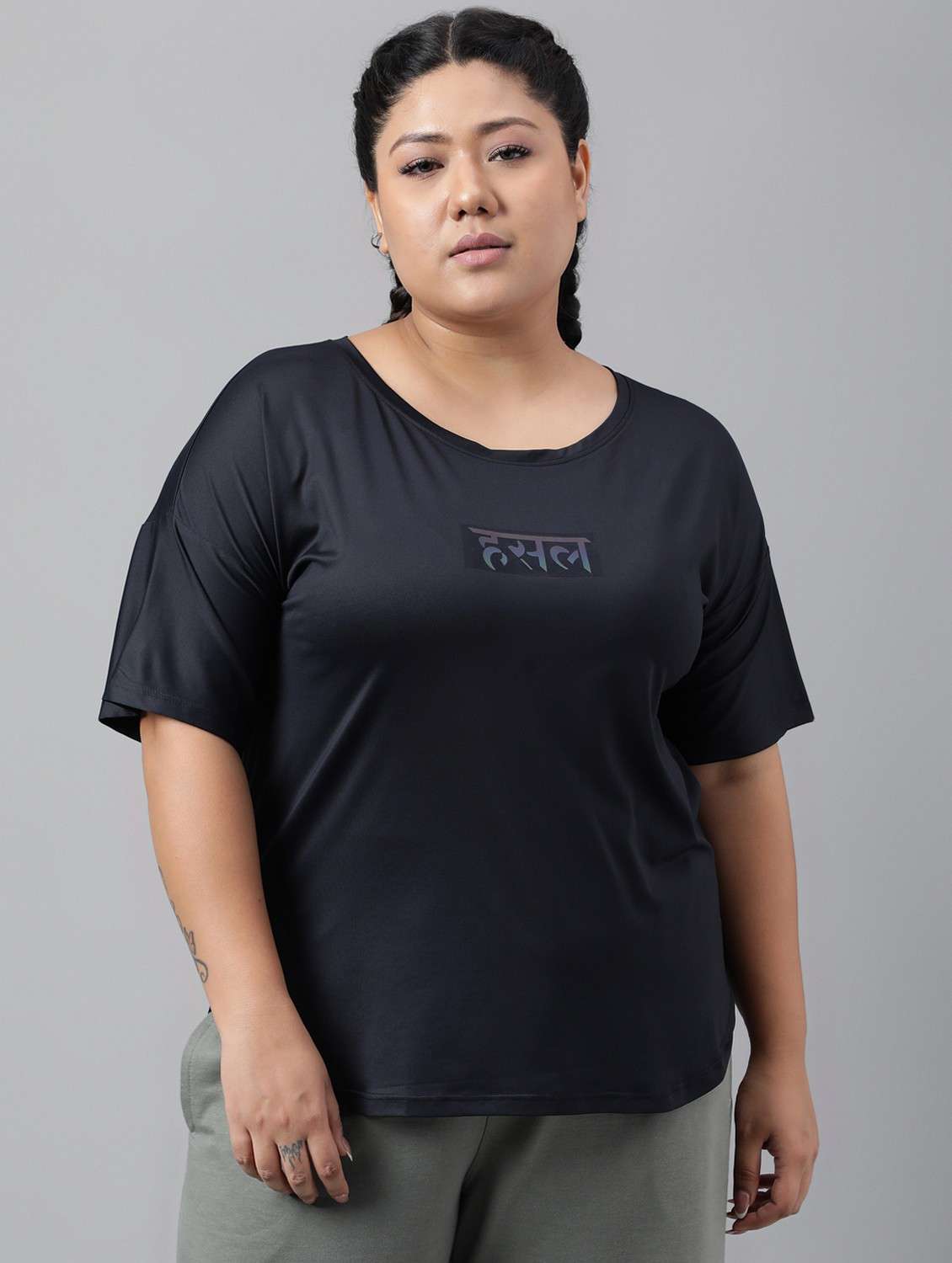women black typographic round neck t-shirt