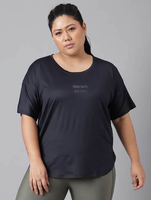 - It’s definitely not okay to be boring! So, are you ready to take things a tad bit unconventionally? Wear your tees in plus types for (active wear occasions and that too in polyester material.