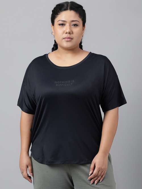 - It’s definitely not okay to be boring! So, are you ready to take things a tad bit unconventionally? Wear your tees in plus types for (active wear occasions and that too in polyester material.