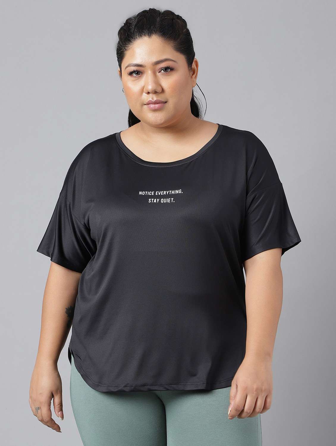 - It’s definitely not okay to be boring! So, are you ready to take things a tad bit unconventionally? Wear your tees in chest print types for (active wear occasions and that too in polyester material.