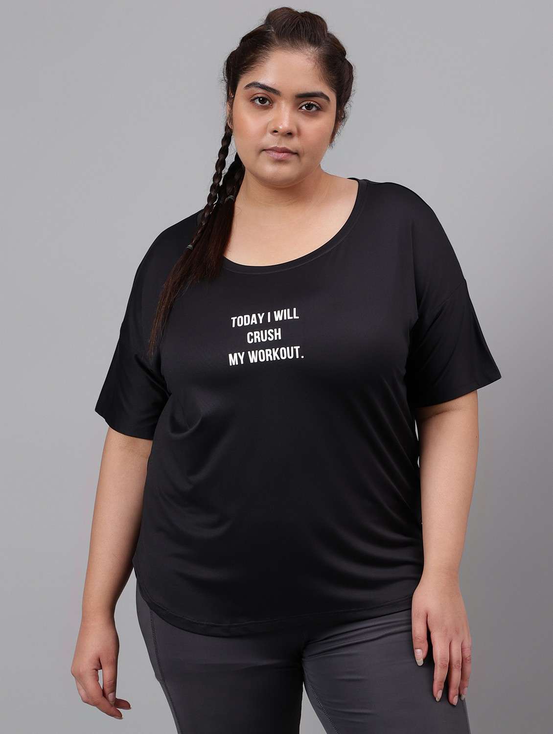 - It’s definitely not okay to be boring! So, are you ready to take things a tad bit unconventionally? Wear your tees in plus types for (active wear occasions and that too in polyester material.