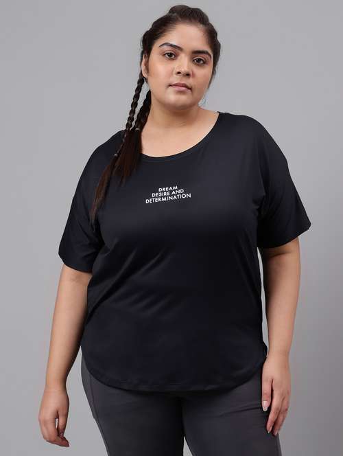 - » women black typographic round neck t-shirt