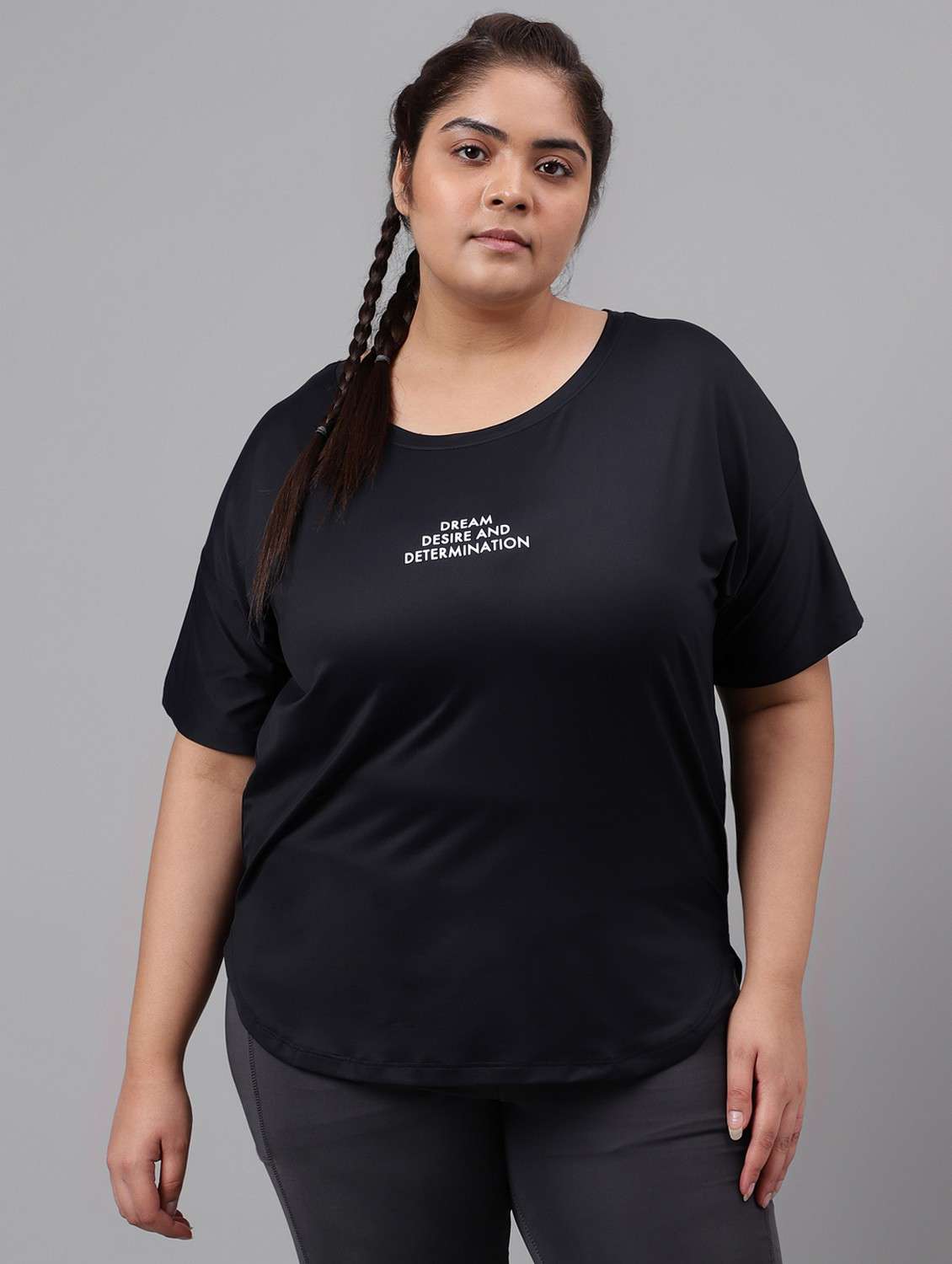 women black typographic round neck t-shirt