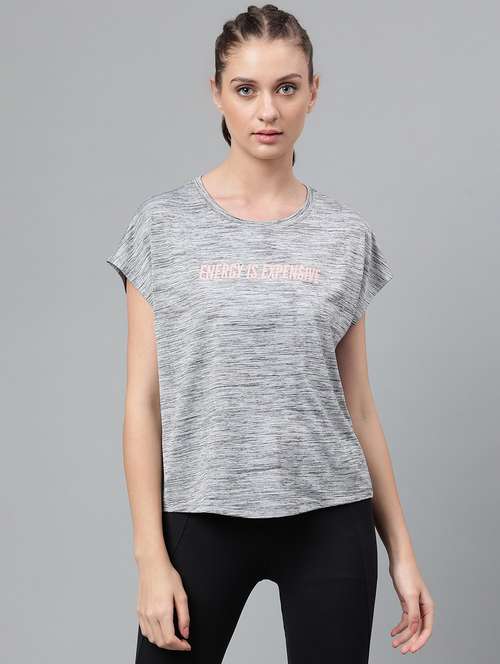 - It’s definitely not okay to be boring! So, are you ready to take things a tad bit unconventionally? Wear your tees in chest print types for (active wear occasions and that too in polyester material.