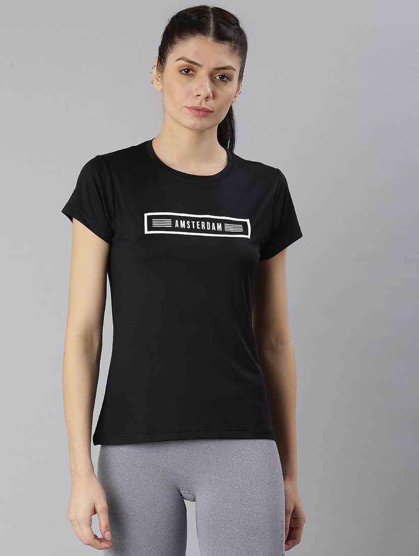 - » women printed round neck dri-fit sports t-shirt