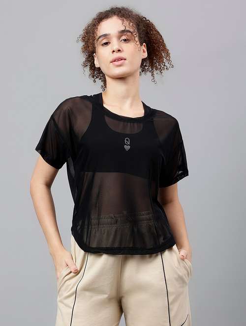 • It’s definitely not okay to be boring! So, are you ready to take things a tad bit unconventionally? Wear your tees in chest print types for (active wear occasions and that too in polyester material.