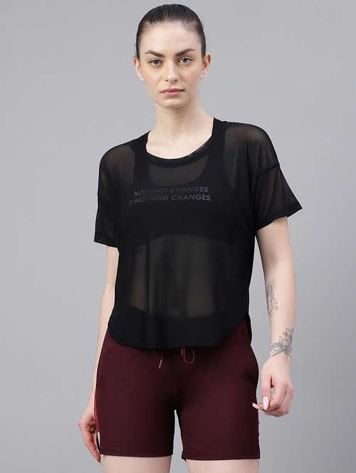 - It’s definitely not okay to be boring! So, are you ready to take things a tad bit unconventionally? Wear your tees in chest print types for (active wear occasions and that too in polyester material.