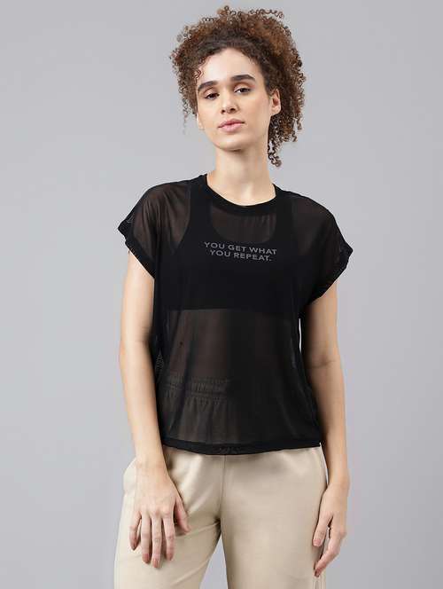 - » women typography printed round neck dri-fit t-shirt
