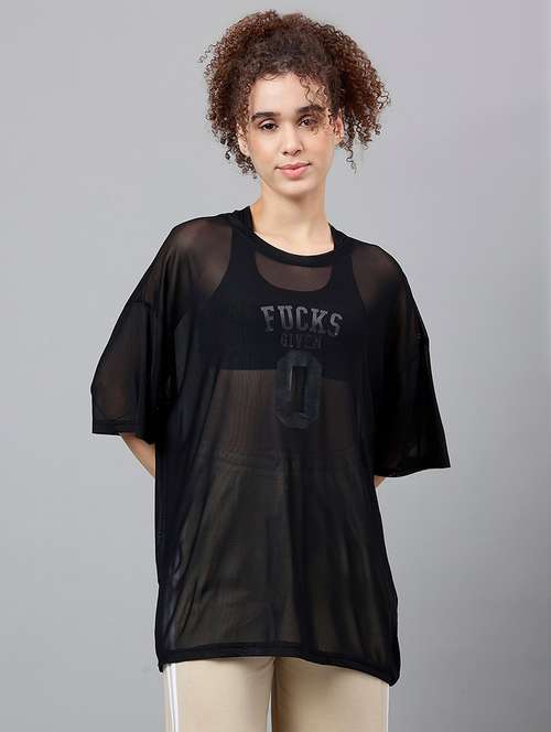 - It’s definitely not okay to be boring! So, are you ready to take things a tad bit unconventionally? Wear your tees in front print types for (active wear occasions and that too in polyester material.