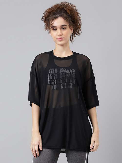 - It’s definitely not okay to be boring! So, are you ready to take things a tad bit unconventionally? Wear your tees in chest print types for (active wear occasions and that too in polyester material.