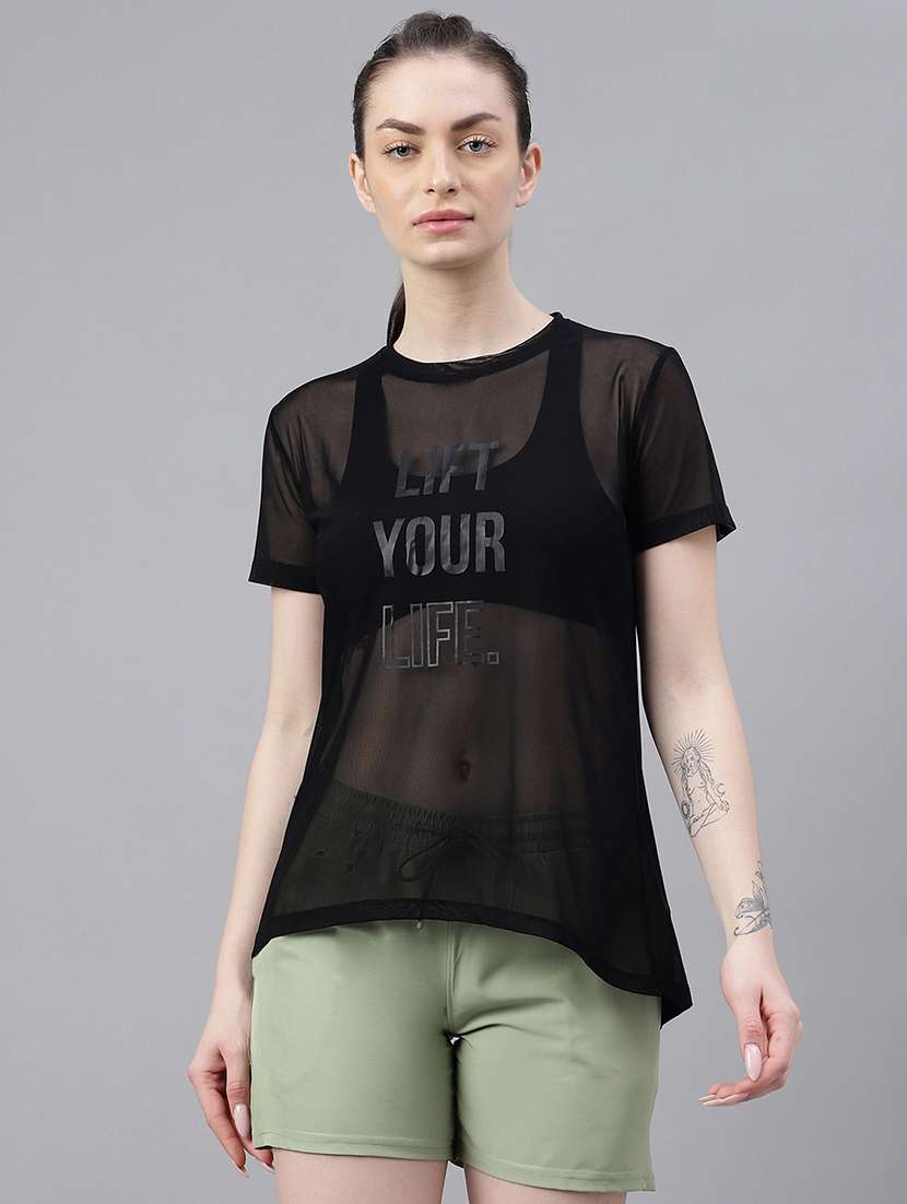 - It’s definitely not okay to be boring! So, are you ready to take things a tad bit unconventionally? Wear your tees in chest print types for (active wear occasions and that too in polyester material.