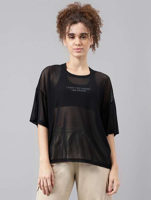- It’s definitely not okay to be boring! So, are you ready to take things a tad bit unconventionally? Wear your tees in chest print types for (active wear occasions and that too in polyester material.
