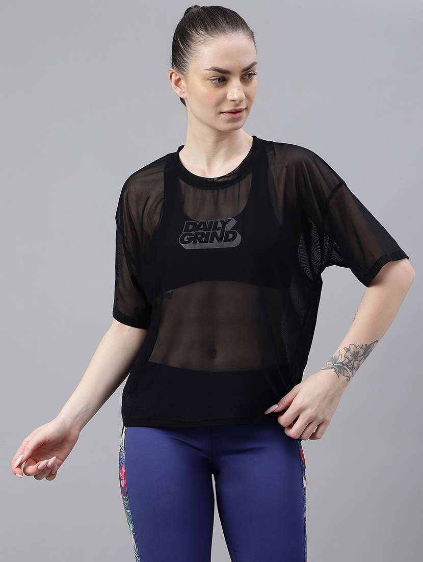 - It’s definitely not okay to be boring! So, are you ready to take things a tad bit unconventionally? Wear your tees in chest print types for (active wear occasions and that too in polyester material.