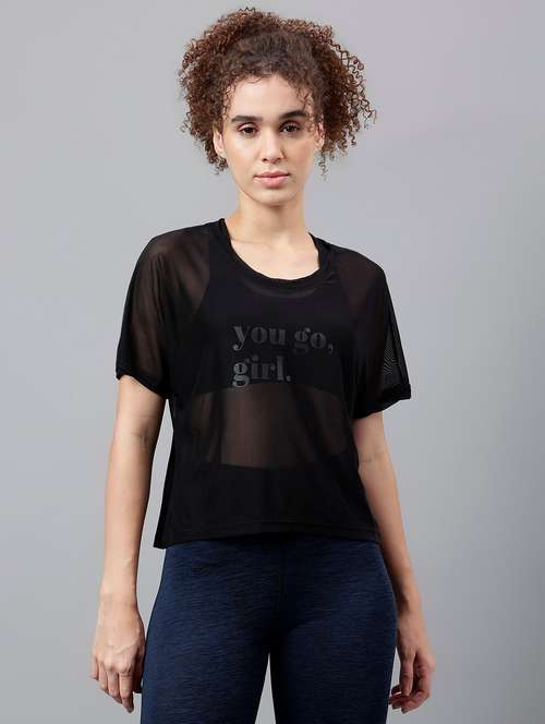 - It’s definitely not okay to be boring! So, are you ready to take things a tad bit unconventionally? Wear your tees in chest print types for (active wear occasions and that too in polyester material.