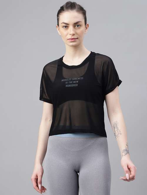 - It’s definitely not okay to be boring! So, are you ready to take things a tad bit unconventionally? Wear your tees in chest print types for (active wear occasions and that too in polyester material.