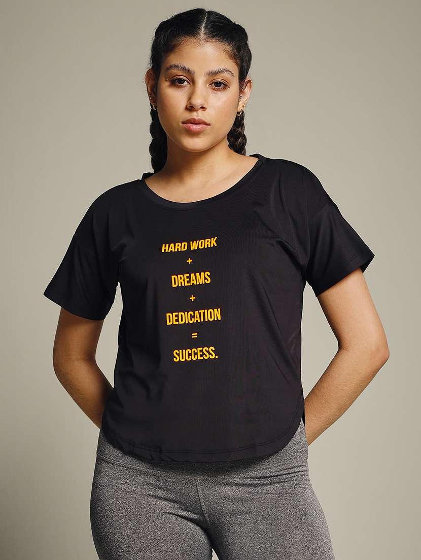 women typography prnted dri-fit sports t-shirt