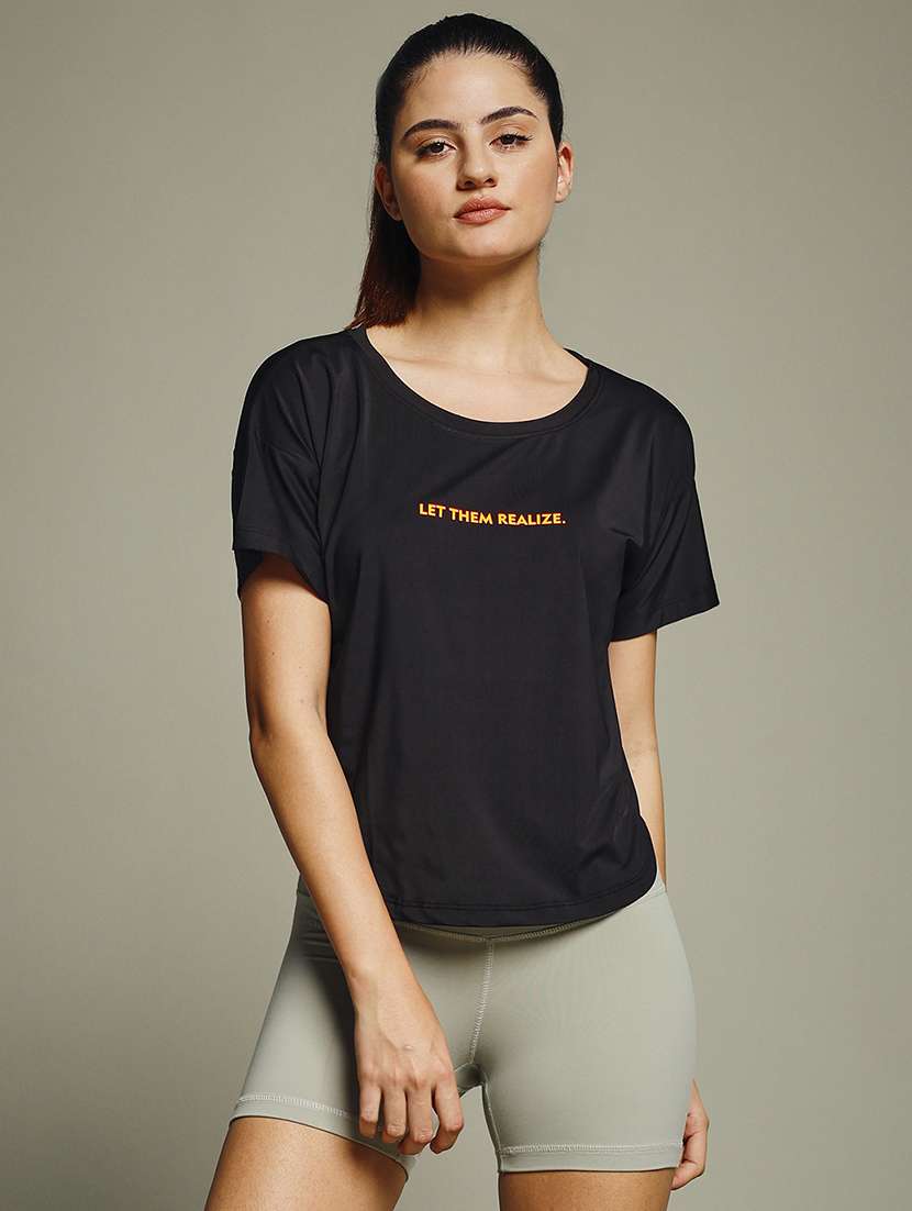 women typography prnted dri-fit sports t-shirt
