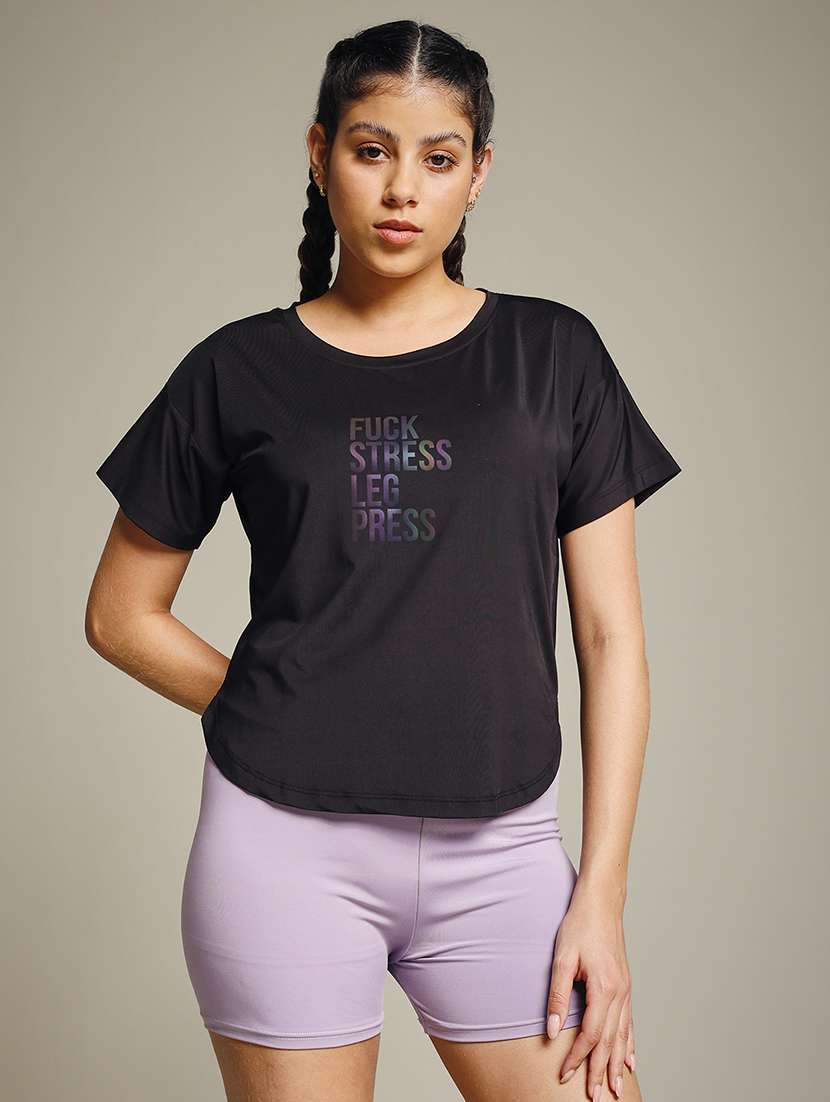 women typography prnted dri-fit sports t-shirt