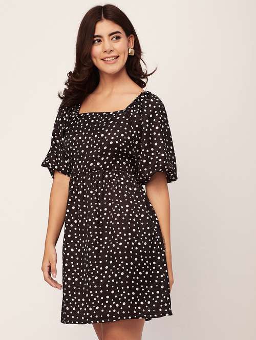 *Includes: This Clothing Consists Of 1 Dress (Any Accessories Worn By The Model Are Not For Sale)*Material: Spun Jam*Dress Length: 33 Inches (Approx.)*Model Stats: The Model In The Image Is 178 Cm Tall, And Bust 34\ Inches Is Wearing Size - (S) Small*Features: Square Neck, Short Sleeves, Regular Fit, Fit And Flare Style, Lightweight, Mini Length And Polka Dots Print Pattern*Care: Machine Wash At 30, Tumble Dry At Low Heat, Iron On Low Temperature*Size Information: Please Refer To Our Size Chart Before Making The Purchase. If Your Size Is In Between Two Sizes, We Recommend That You Choose A Larger Size*Tags: Shift Dress For Women, Polka Dot Dresses For Women, Short Dress For Women, Square Neck Dress For Women, Casual Loose Dresses, Square Neck Shift Dress, Printed Mini Dress For Women