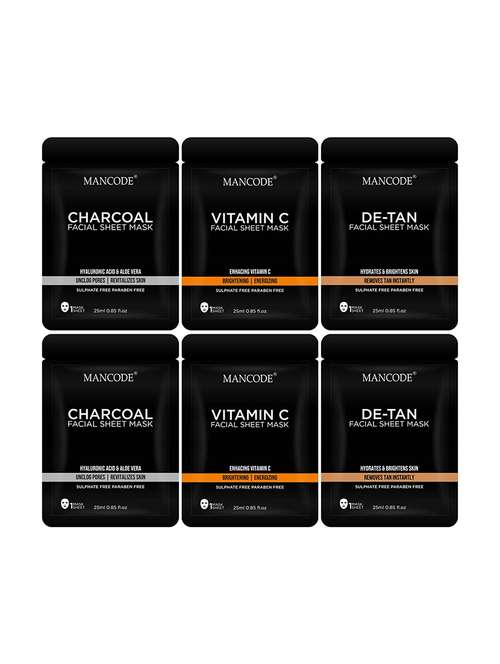 - » mancode charcoal, vitamin c and de tan facial sheet mask, 25 ml each, pack of 3