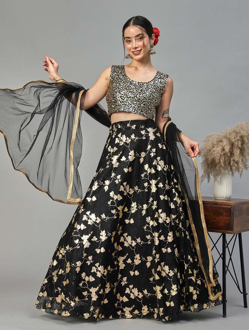 - » black colored flared lehenga