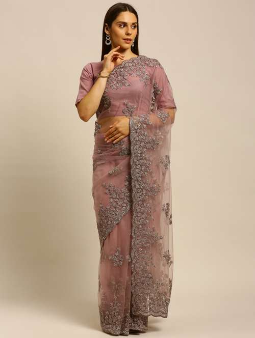 Kasee Black Heavy Embroidered Net Women's Saree With Blouse Piece. Work comes with multi coding and hand work.