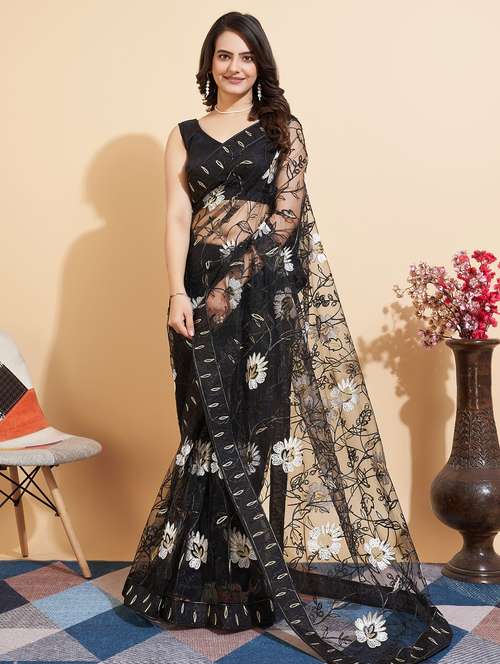 Vairagee Soft Net embroidery saree with Mono Banglory blouse