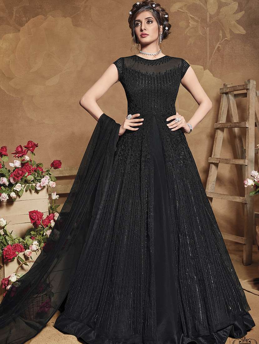 - » black net semistitched suit