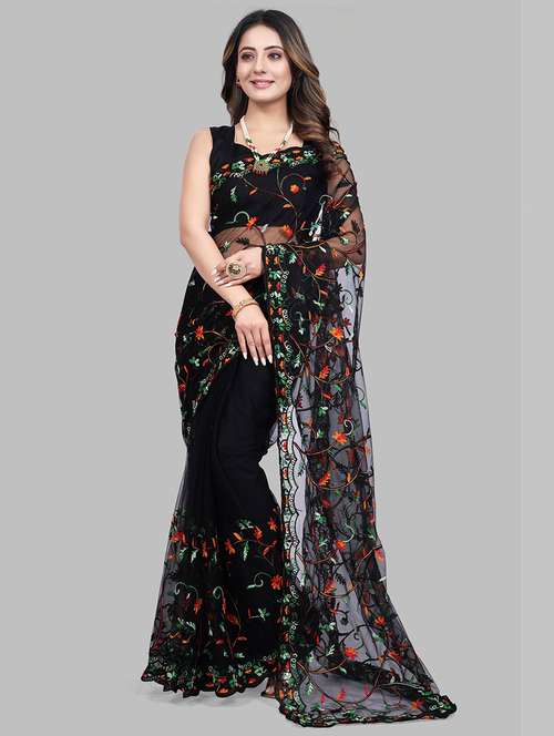 - » women black embroidered net saree