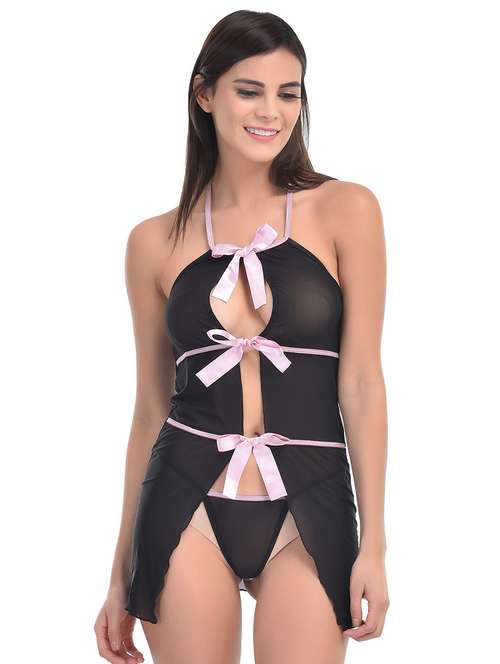 - » tie-knot detail babydoll with g-string
