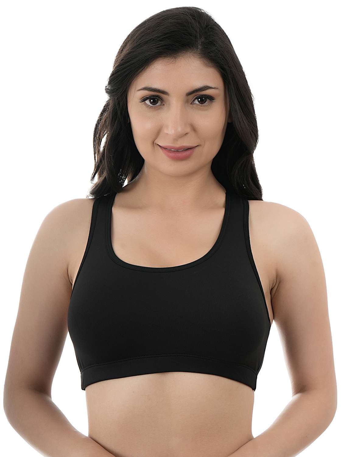 - » women black solid racerback sports bra