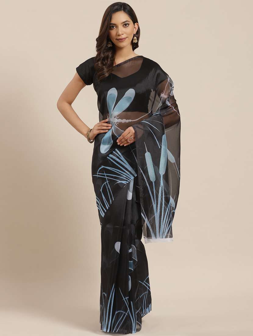 - » women's floral black colored saree